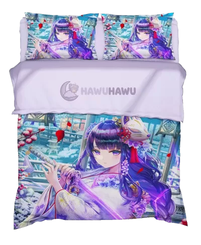 Kamisato Ayaka Genshin Impact Video Game Comforter Style Bedding High Def Prints