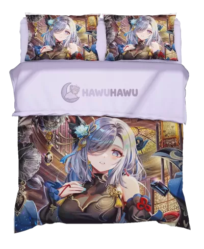 Shenhe Genshin Impact Game Bed Set Featuring Detailed Character Rendering