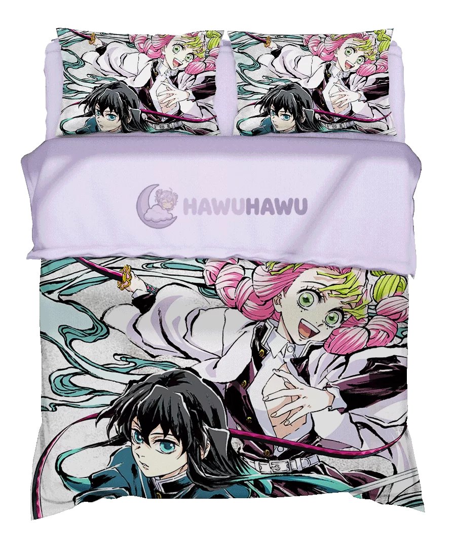 • Demon Slayer: Kimetsu no Yaiba Inspired Anime Duvet Cover - Featuring Muichiro Tokito&Mitsuri Kanroji