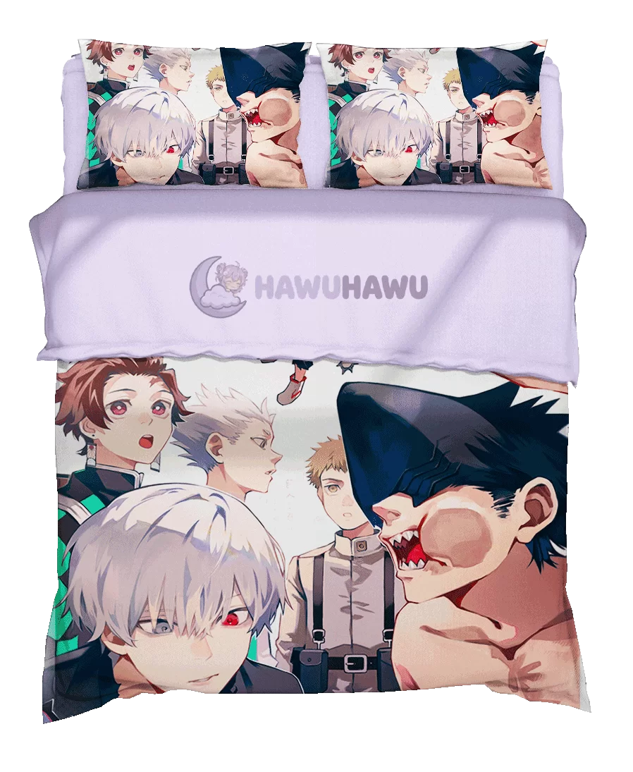 Transform your bedroom into a manga and anime sanctuary with our exclusive Attack on Titan, Haikyu!!, Tokyo Ghoul, Kimetsu no Yaiba, and Chainsaw Man themed bed sheets. Crafted for fans who want to showcase their passion, these vibrant and high-quality sheets feature beloved characters like Kaneki Ken, Hoshiumi Kourai, Falco Grice, Kamado Tanjirou, and Denji. Designed for comfort and durability, each set brings the dynamic energy of your favorite series right into your sleep space. Elevate your bedroom decor and immerse yourself in the worlds of your fandom every night with our stunning anime bed sheets—perfect for passionate collectors and anime enthusiasts alike.