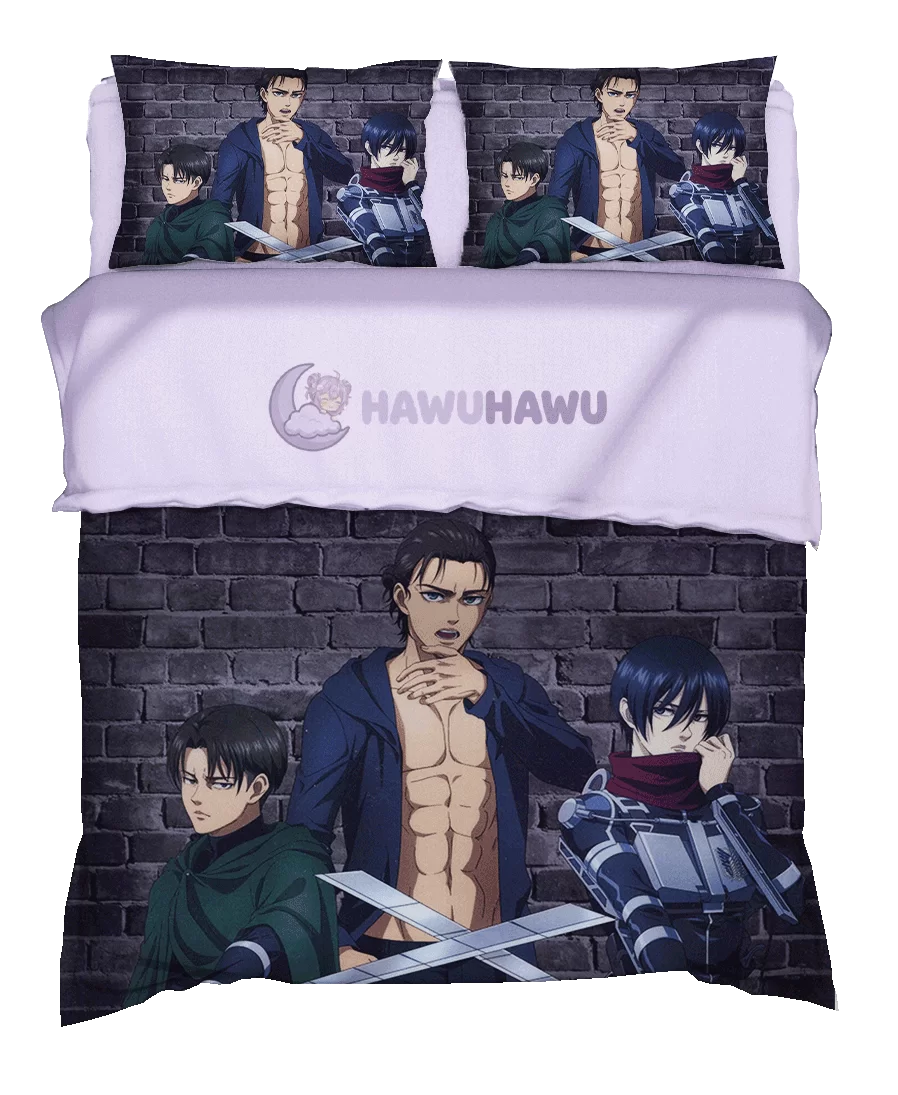 Transform your bedroom into a battlefield of bravery and adventure with our Mikasa Ackerman, Levi Ackerman, and Eren Jaeger Attack on Titan Theme Anime Bedding Set. Crafted for die-hard fans and anime enthusiasts, this premium duvet cover set brings the epic world of Attack on Titan right into your personal space.