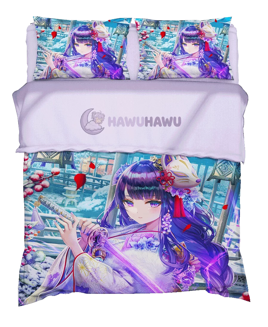 • Raiden Shogun Genshin Impact Gamer Bed Sheets Smooth Finish for Active Sleepers