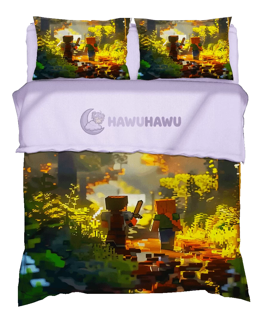 • Steve&Alex Minecraft Gamer Bedding 3-Piece Essential Bedding